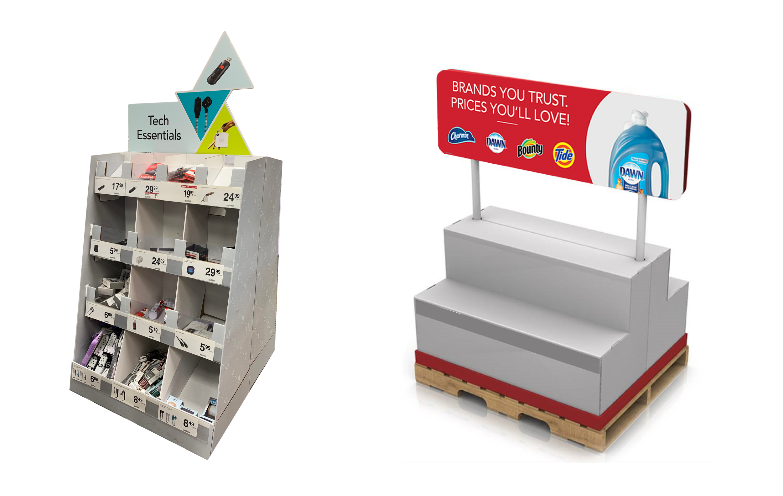 Signage In-store corrugates, endcaps and inline runs featuring bold quarterly campaigns or vendor branding